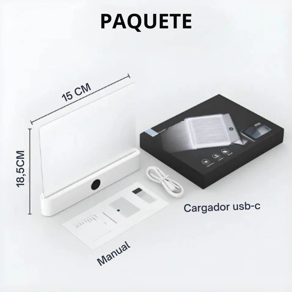 Control intuitivo con solo tres botones: Ajusta el brillo presionado el botón de encendido, cambia el color con un toque y programa el temporizador para el apagado autonático. Su batería recargable por USB te permite largas horas de lectura sin interrupciones haciendo que la tecnología se adapte a tí, no al revés.